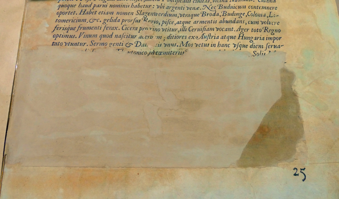 Der Text wurde überklebt, um das Papier zu stabilisieren.